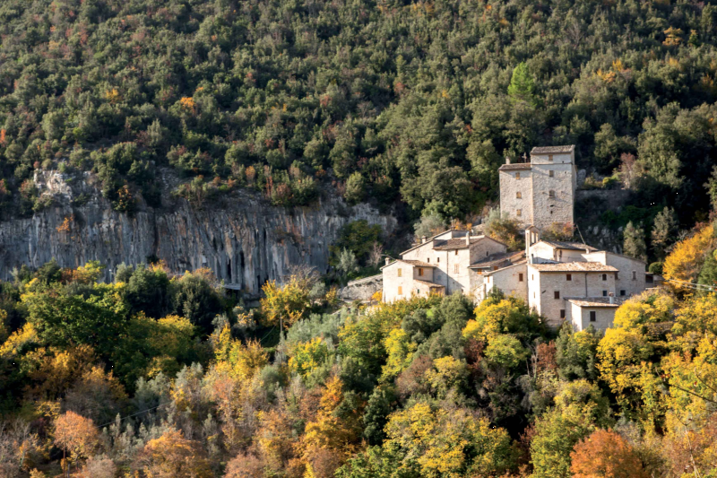 Il piccolo abitato, nel comune di Scheggino, caratterizzato da una possente torre colombaia si sviluppa intorno alla Chiesa romanica di San Nicola con facciata a capanna e portale del cinquecento. All’interno si trovano alcuni affreschi del XVI secolo tra i quali Quattro Evangelisti, Madonna con Bambino e San Nicola. Sull’altare è un paliotto in legno del XVIII secolo dove è raffigurato il Santo al quale è dedicata la chiesa.